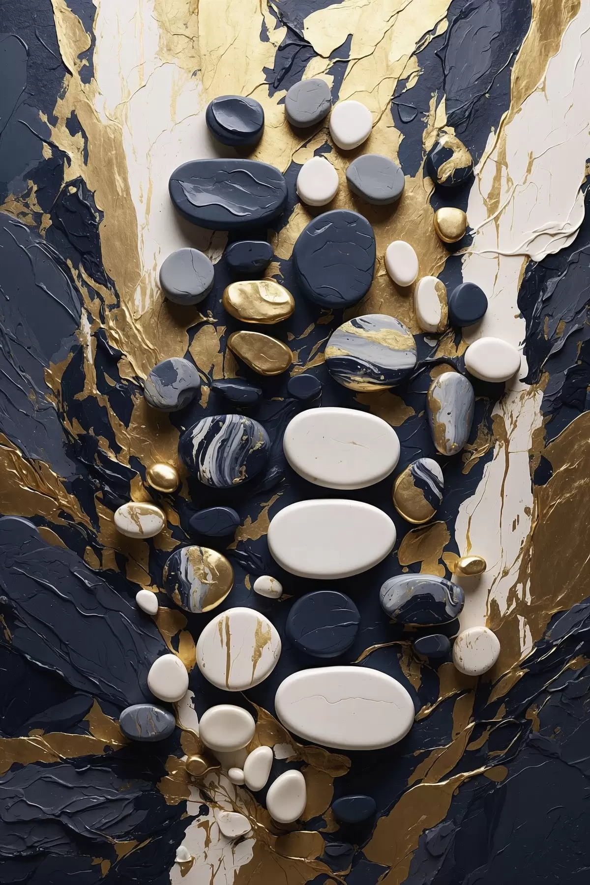 Poster Compositie van abstracte stenen in donkerblauwe tinten f48357