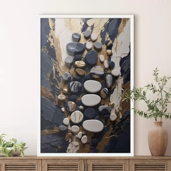 Poster Compositie van abstracte stenen in donkerblauwe tinten Nr f48357