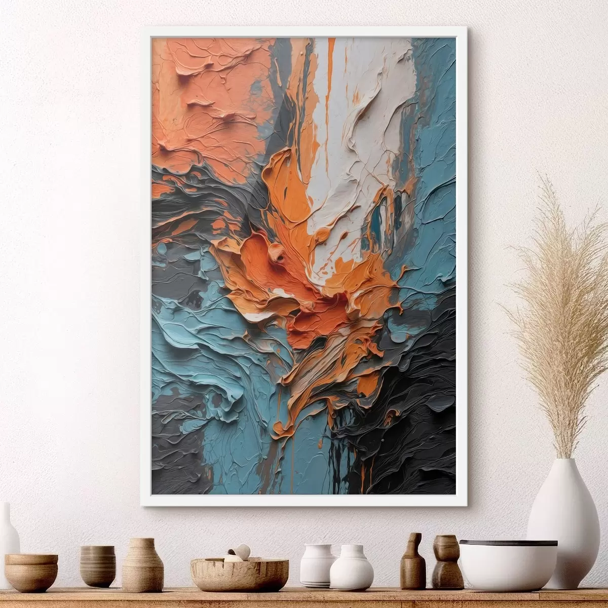 Poster Heldere abstracte penseelstreken in oranje- en blauwtinten Nr f48359