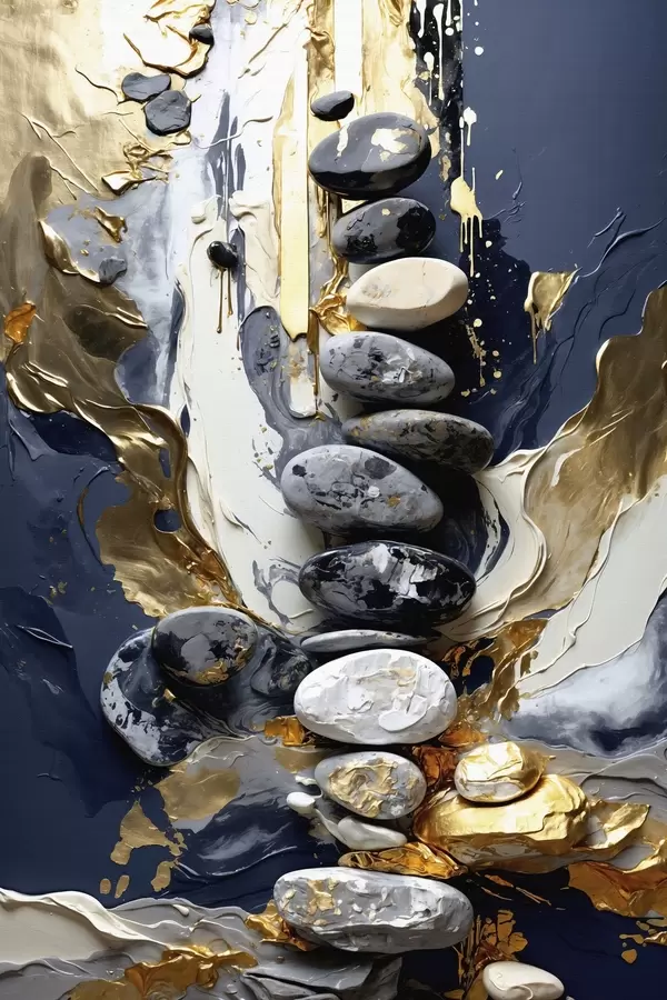 Poster Abstracte compositie met stenen en gestructureerde penseelstreken Nr f48362