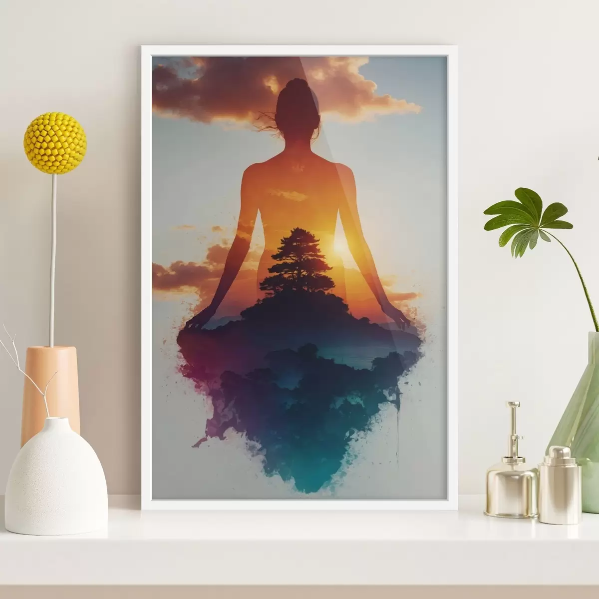Poster Menselijk silhouet tegen een achtergrond van een zonsondergang Nr f48364