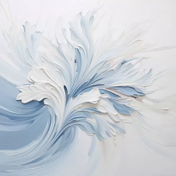 Poster Een abstract bloemmotief in wit en lichtblauw met bloemblaadjes met textuur en wervelende lijnen Nr f48395