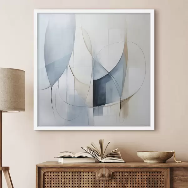 Poster Abstracte, minimalistische compositie met blauwe en beige vormen Nr f48404