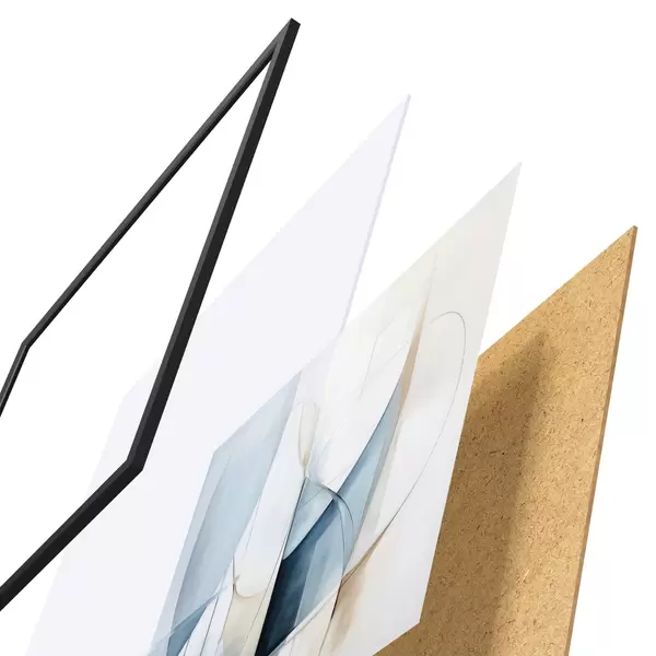 De poster bestaat uit een frame, plexiglas, geprinte afbeelding en spaanplaat achterkant. De poster kan meteen aan de muur worden gehangen dankzij de bevestigingen op de achterkant.