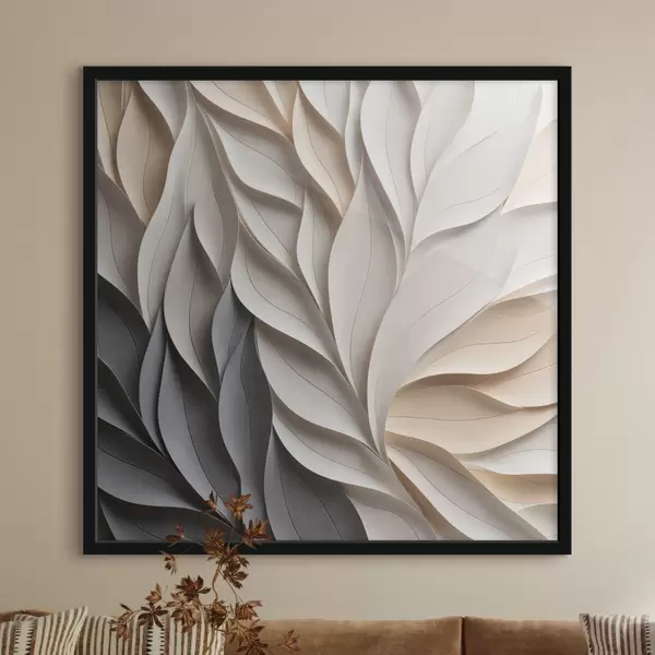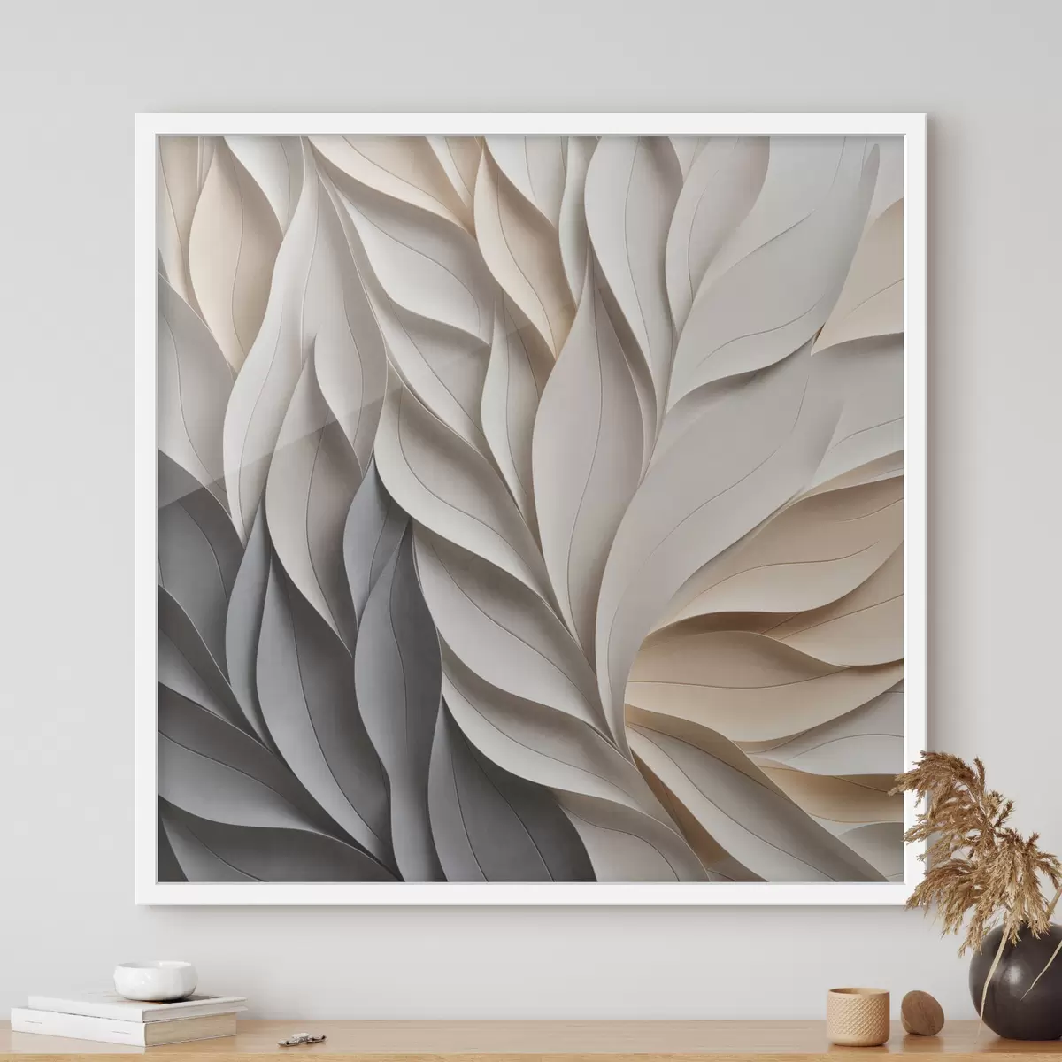 Poster Een gestructureerd patroon van overlappende abstracte bladvormen in neutrale tinten van beige, crème en grijs Nr f48407