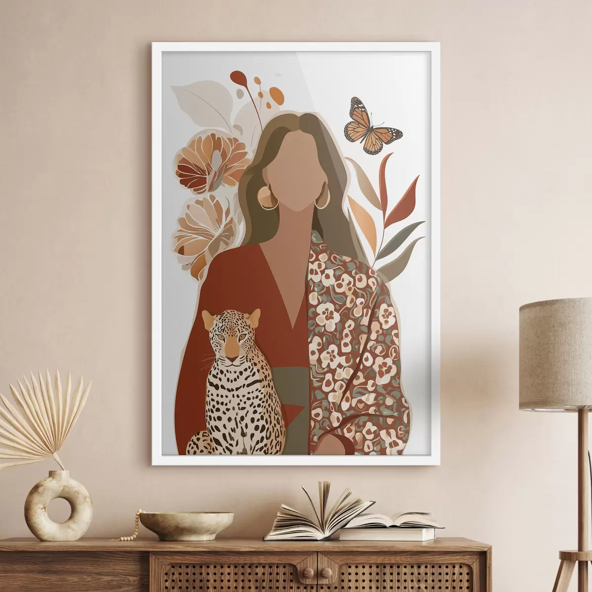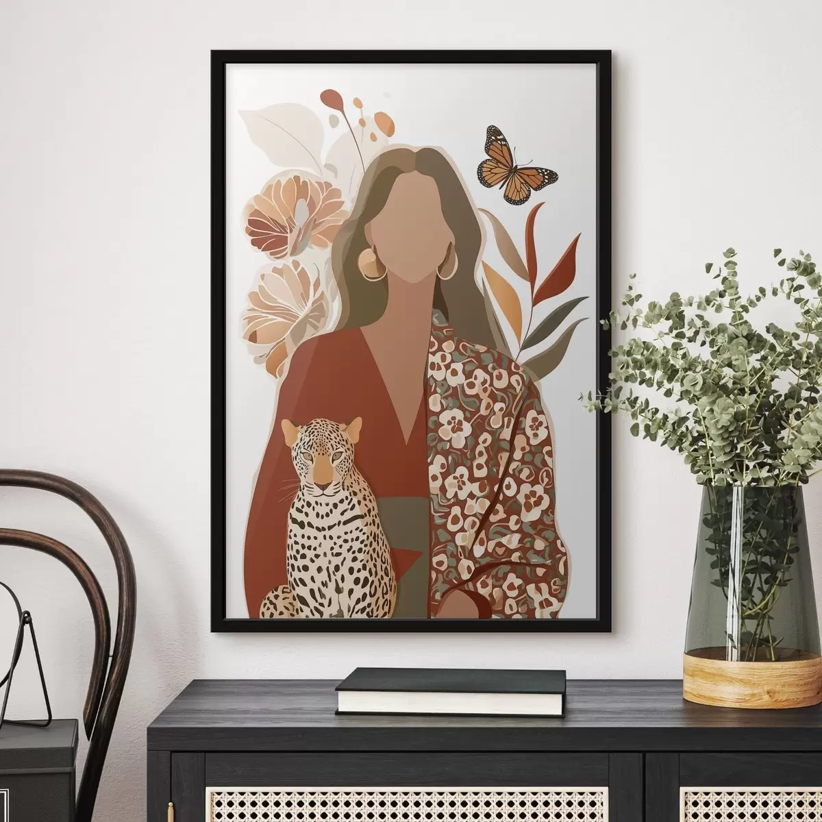 Poster Vrouw tegen een bloemenachtergrond Nr f48435