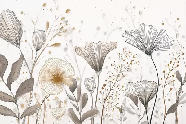 Poster Opvallende bloemen en grassen, minimalisme Nr f48484