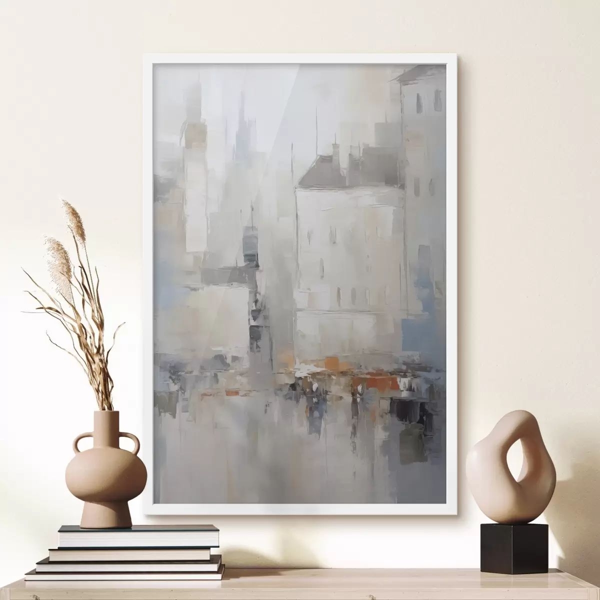 Poster Abstracte imitatie van een stadsgezicht uit de schilderkunst Nr f48502