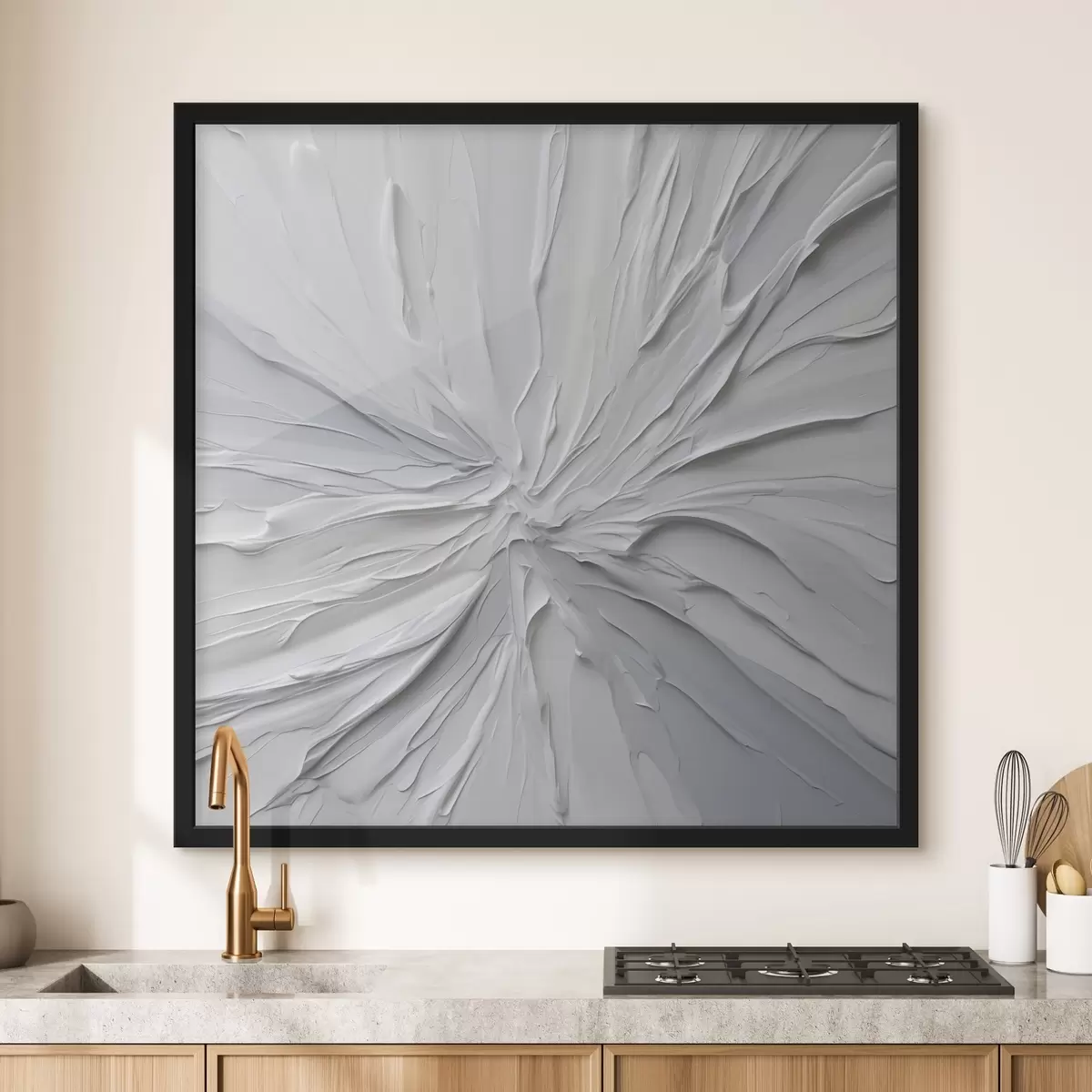 De poster bestaat uit een frame, plexiglas, geprinte afbeelding en spaanplaat achterkant. De poster kan meteen aan de muur worden gehangen dankzij de bevestigingen op de achterkant.