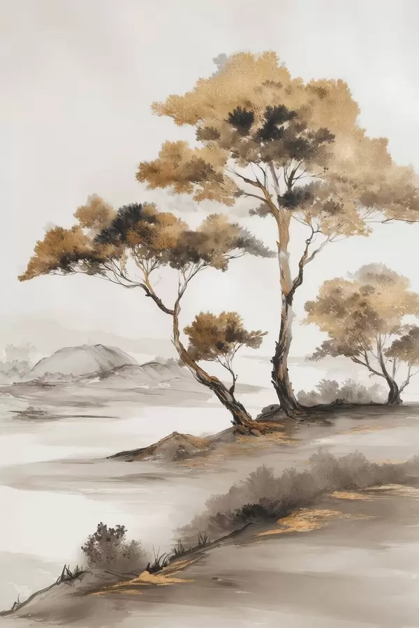 Poster Abstrakt landschap met bomen Nr f48512