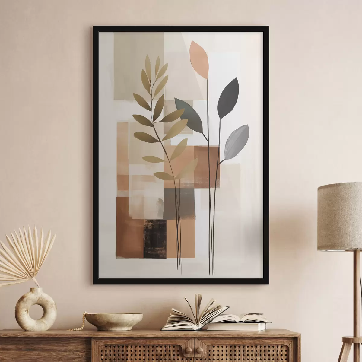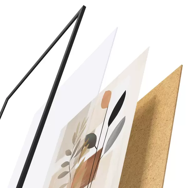 De poster bestaat uit een frame, plexiglas, geprinte afbeelding en spaanplaat achterkant. De poster kan meteen aan de muur worden gehangen dankzij de bevestigingen op de achterkant.