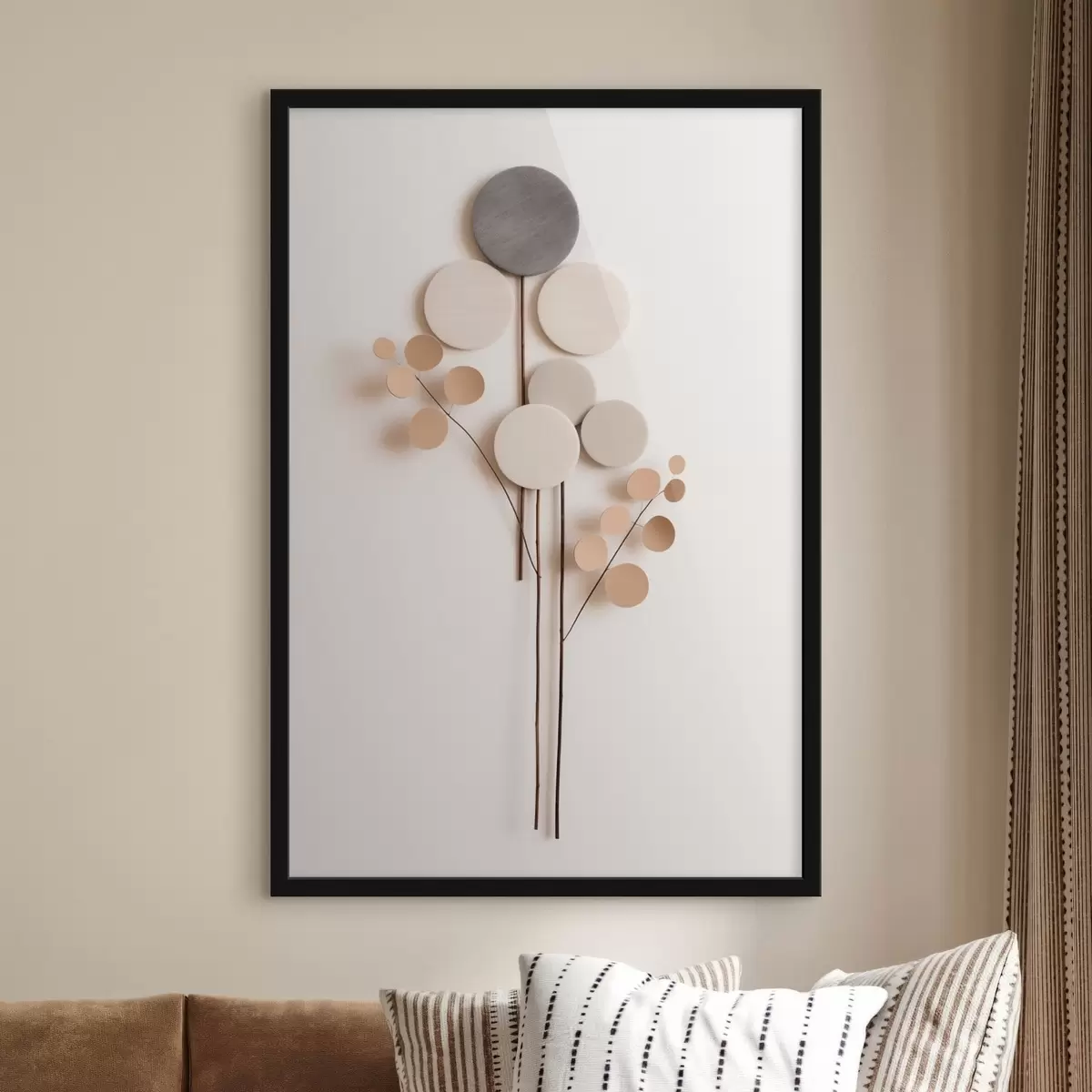 Poster Minimalistische ronde vormen op dunne stelen Nr f48597