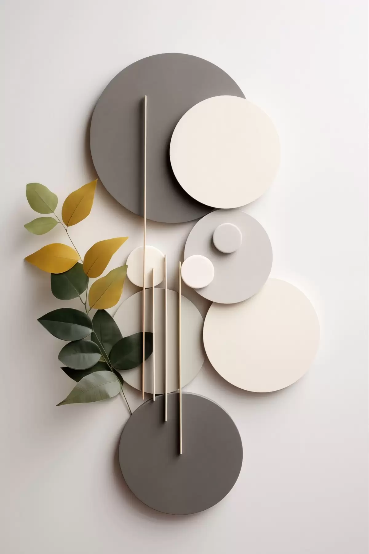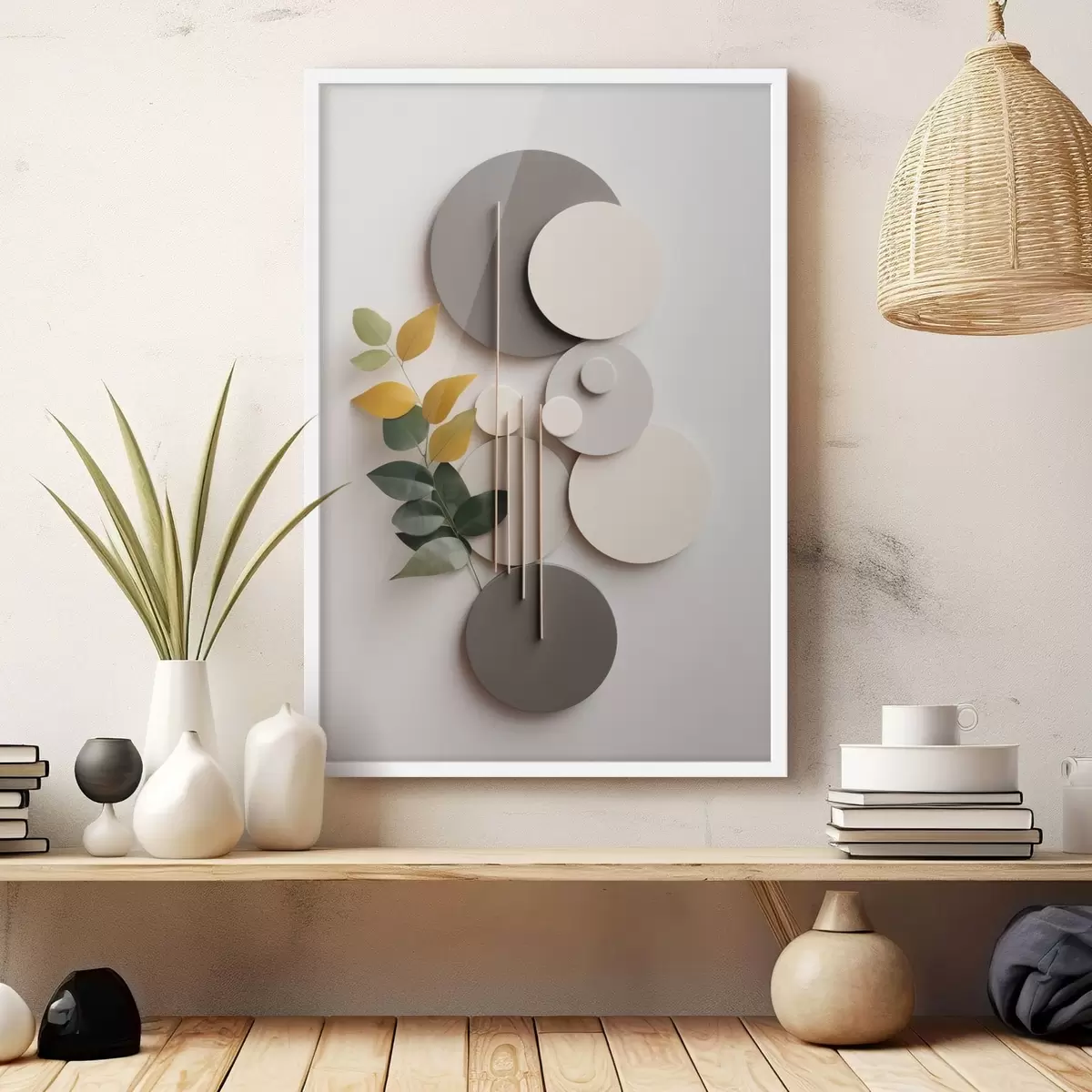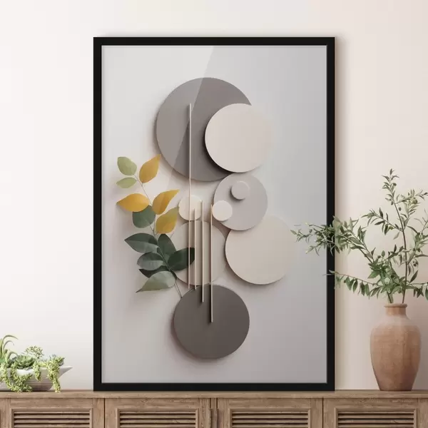 Poster Geometrische cirkels met een groene, bladrijke tak Nr f48598