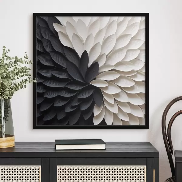 Poster Contrasterende lichte en donkere bloemblaadjes in de vorm van een bloem f48604