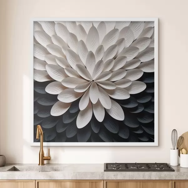 Poster Abstracte bloem met vele licht gelaagde bloemblaadjes Nr f48605