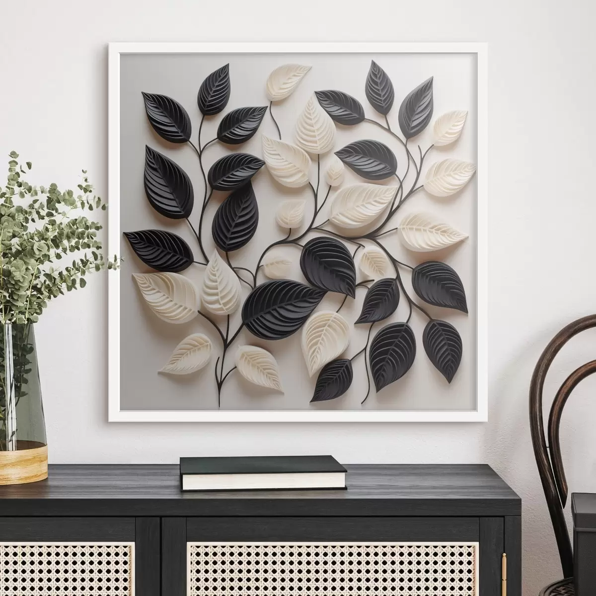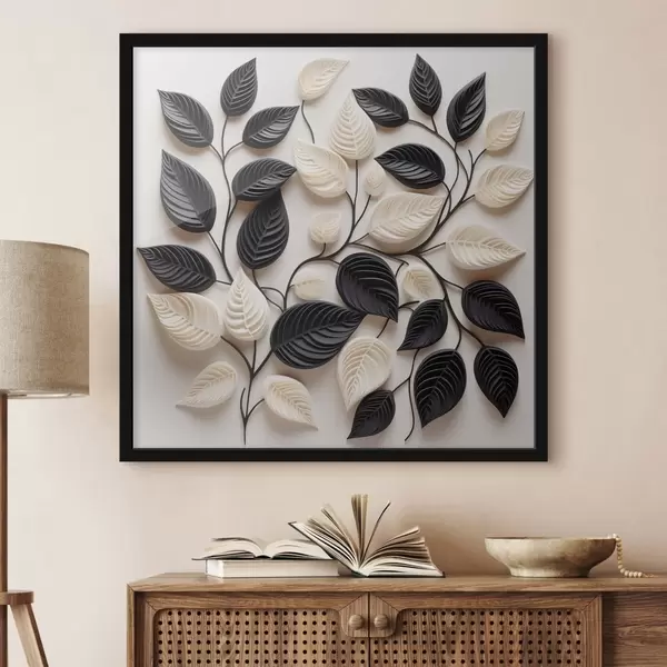 Poster Een combinatie van zwarte en lichte bladeren aan takken f48606