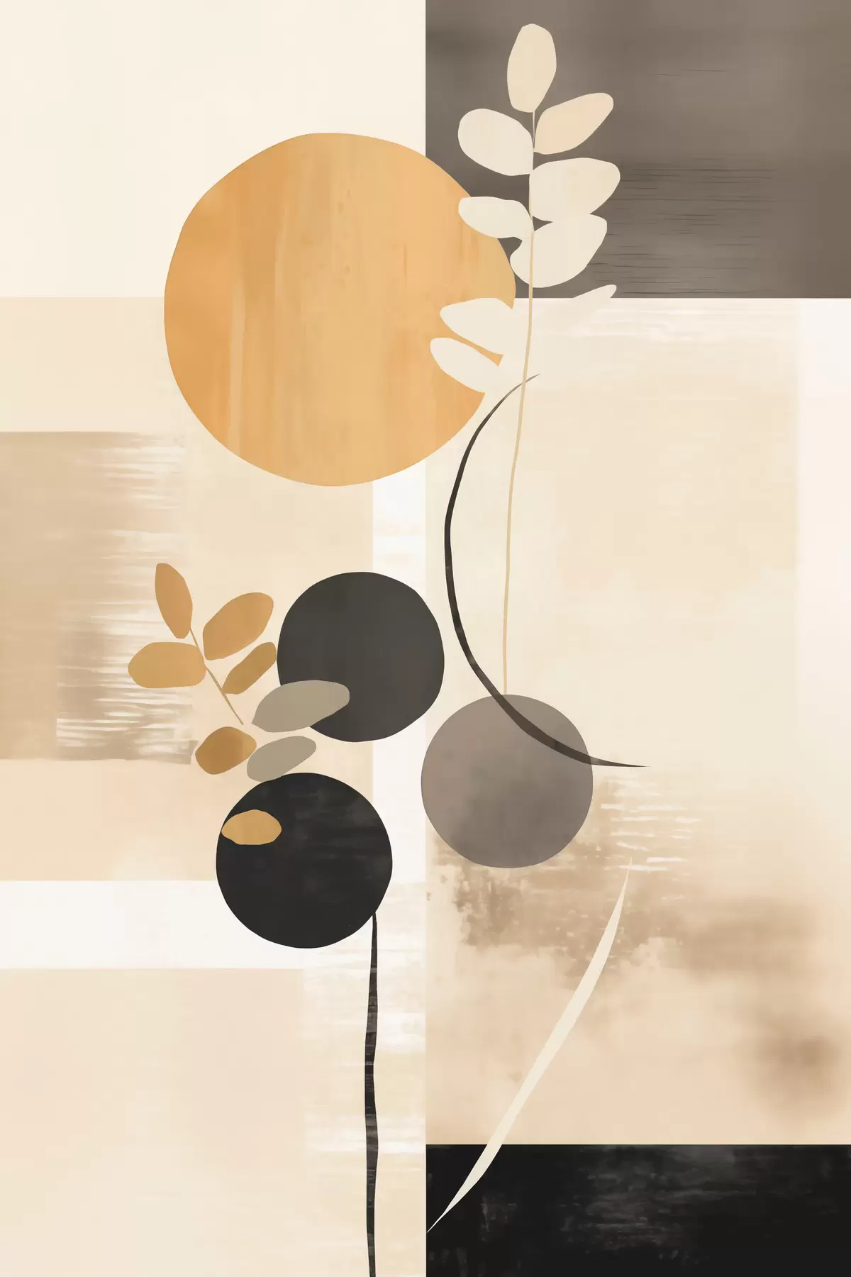 Poster Een abstracte compositie met bladeren en cirkels Nr f48612