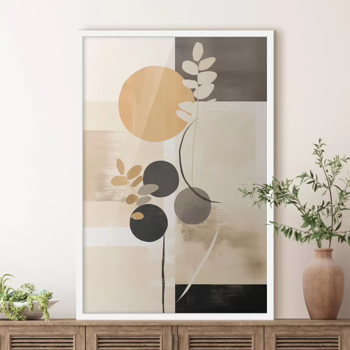 Poster Een abstracte compositie met bladeren en cirkels f48612