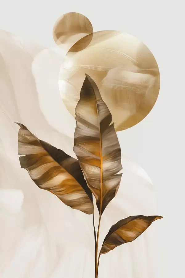 Poster Een abstracte compositie van bladeren en cirkels Nr f48614