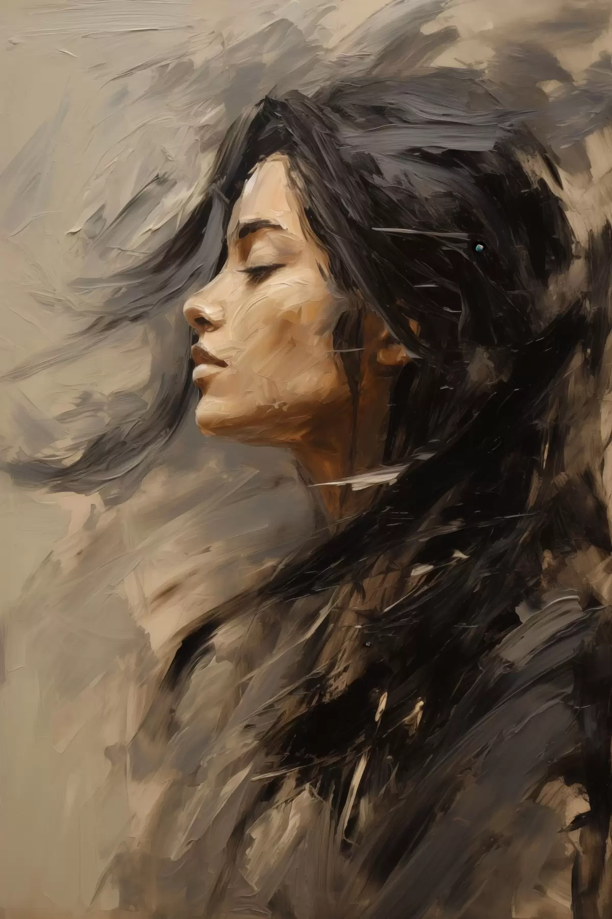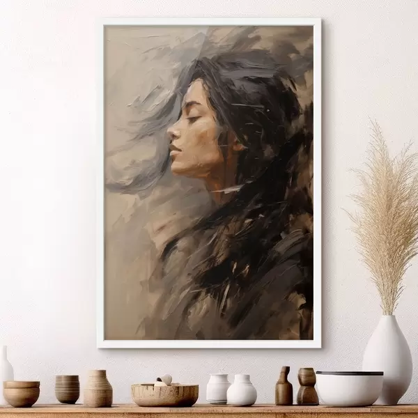 Poster Vrouwelijk profiel in schilderachtige penseelstreken, warme tinten Nr f48621
