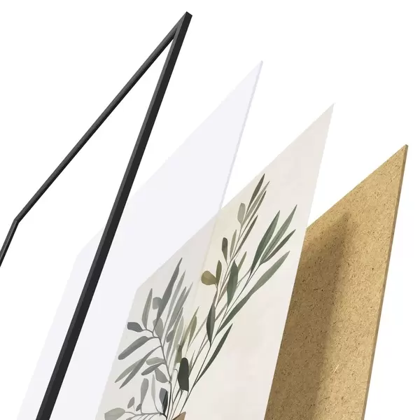 De poster bestaat uit een frame, plexiglas, geprinte afbeelding en spaanplaat achterkant. De poster kan meteen aan de muur worden gehangen dankzij de bevestigingen op de achterkant.