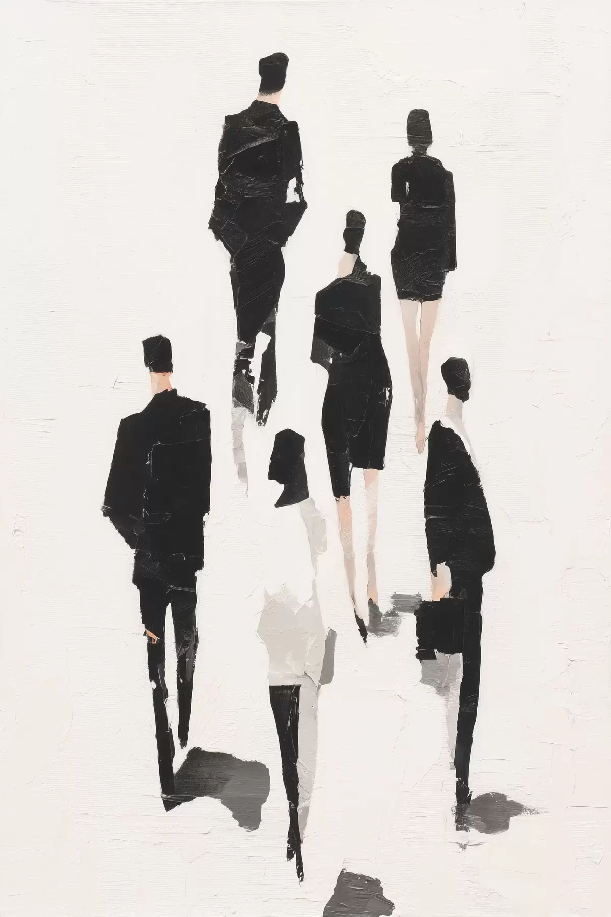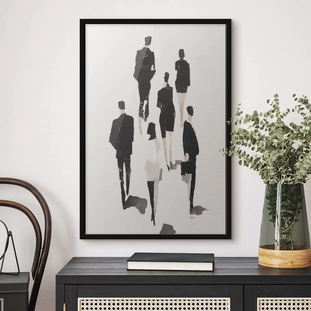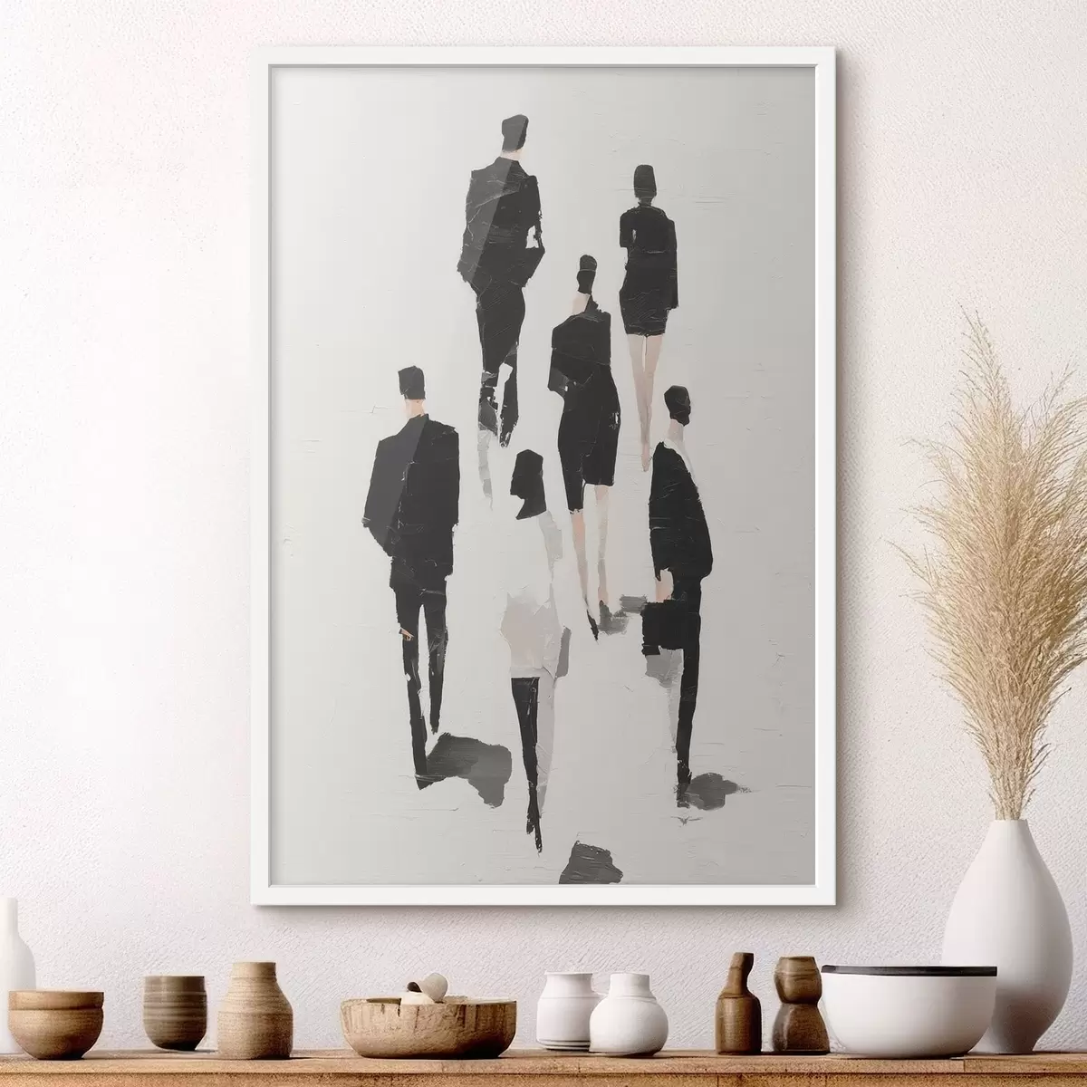 Poster Een abstractie met silhouetten van mensen f48667