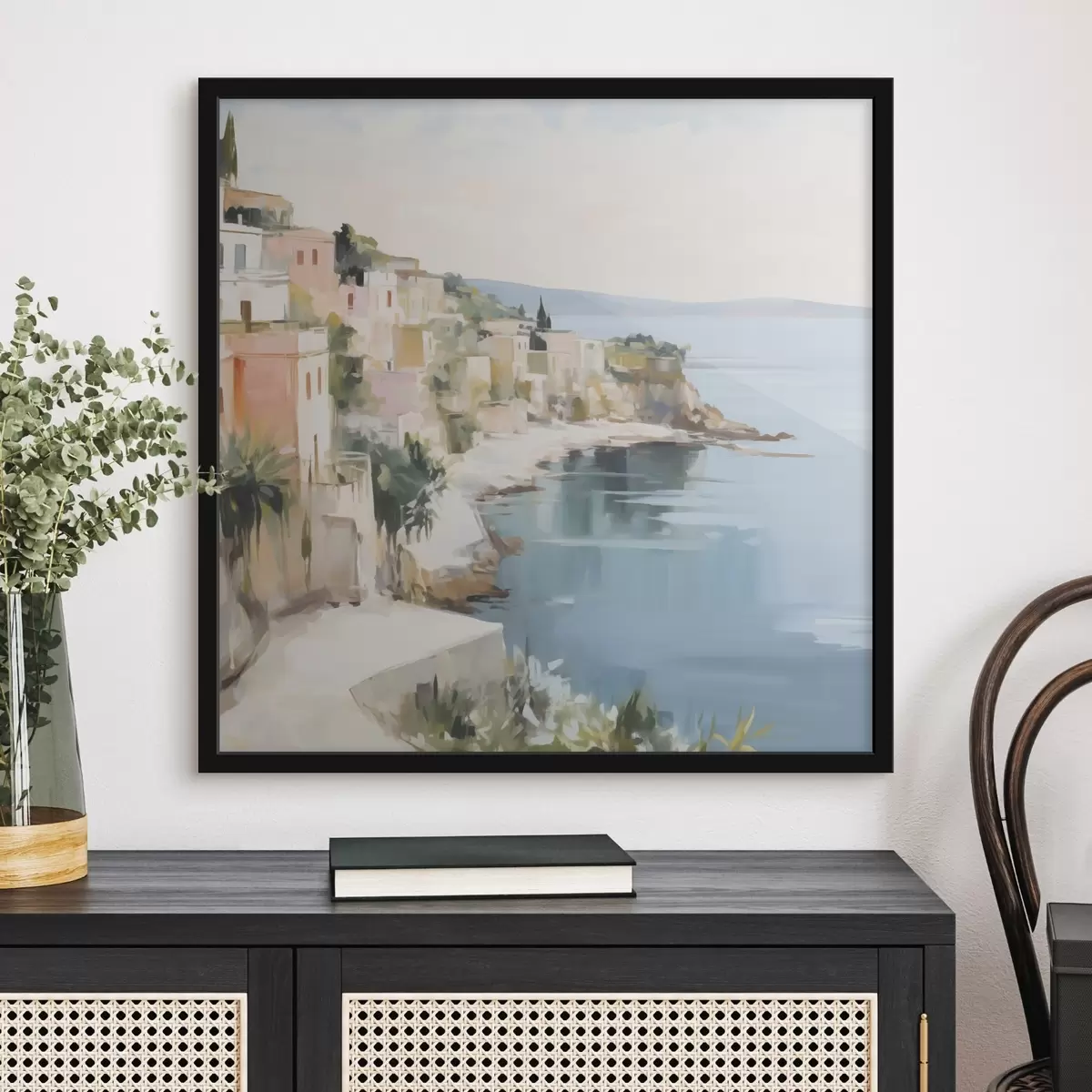 Poster Landschap van een kustplaats, naar een schilderij Nr f48675