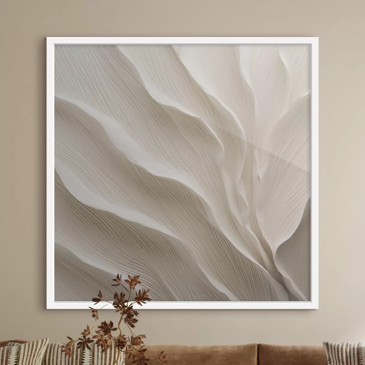 Je kunt het schilderij ophangen aan schroeven. Hiervoor leveren we bevestigingen bij onze foto's, zodat je de foto gemakkelijk kunt ophangen.