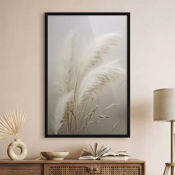 Poster Enkele hoge, pluimachtige pampasgrassen met lange, slanke bladeren f48724