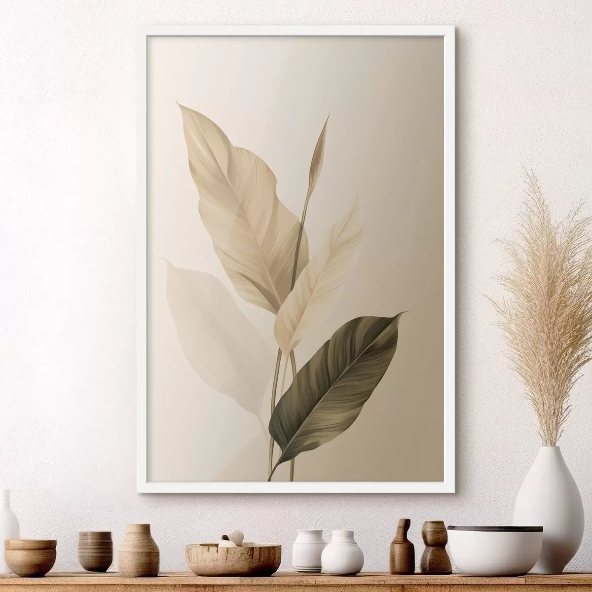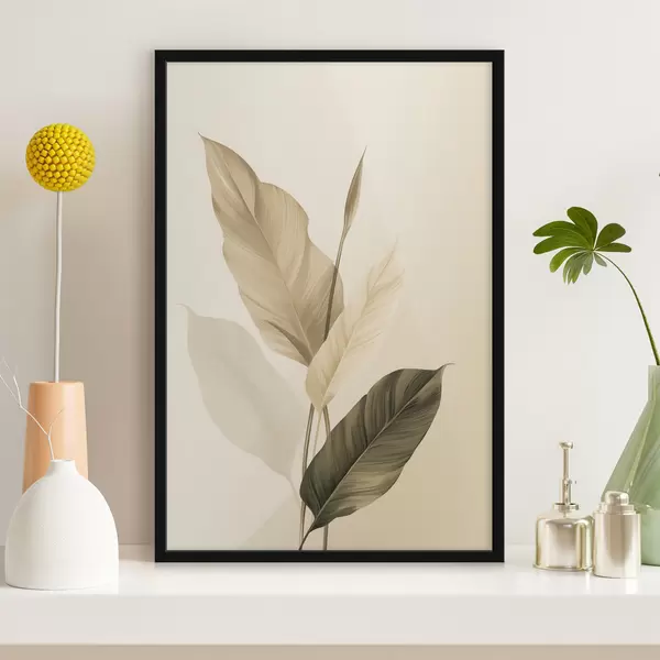 Poster Grote tropische bladeren in beige- en bruintinten, lichte achtergrond Nr f48725