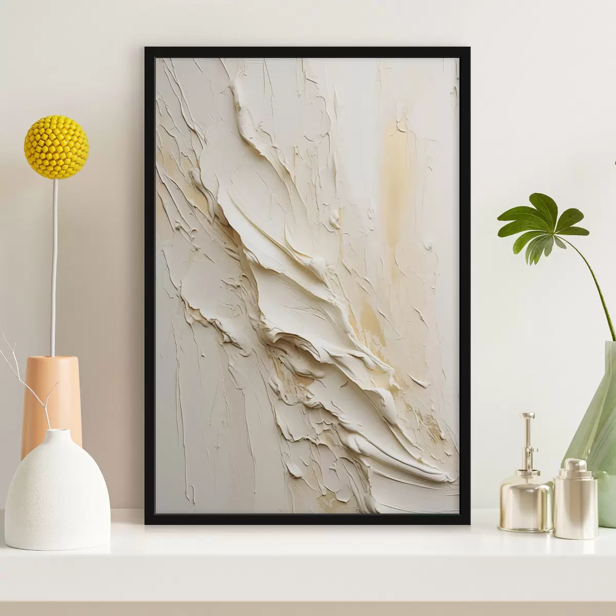 Poster Schilderij in abstracte stijl met textuur in crème en beige, minimalistische kunst Nr f48737