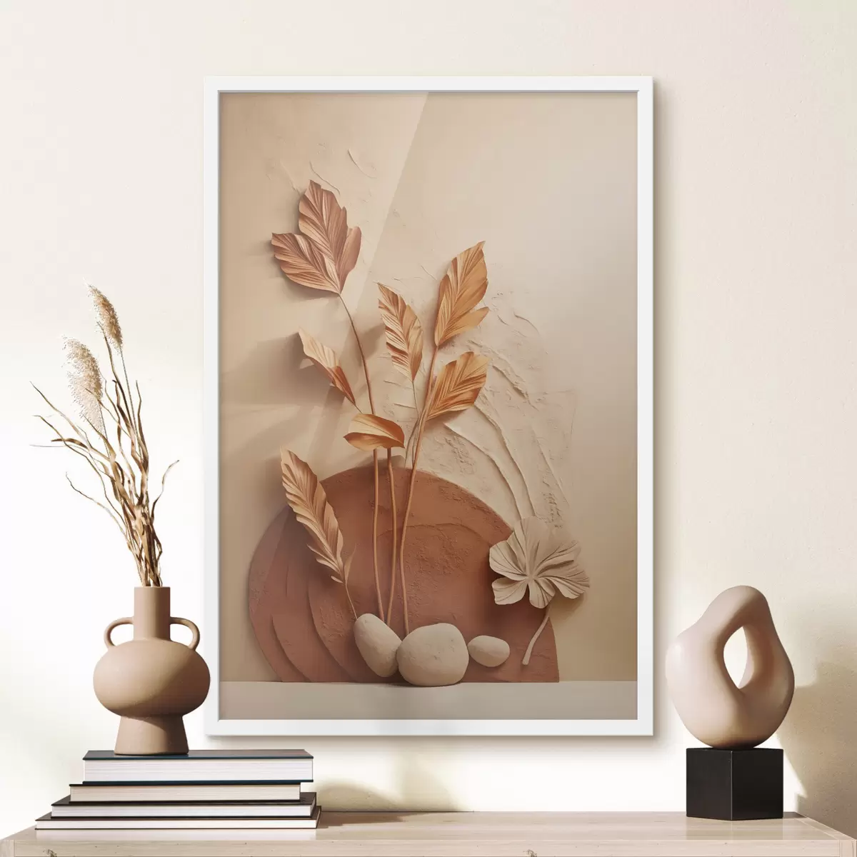 Poster Een minimalistisch kunstwerk met gedroogde bloemen en pampasgras, op een achtergrond met textuur Nr f48740