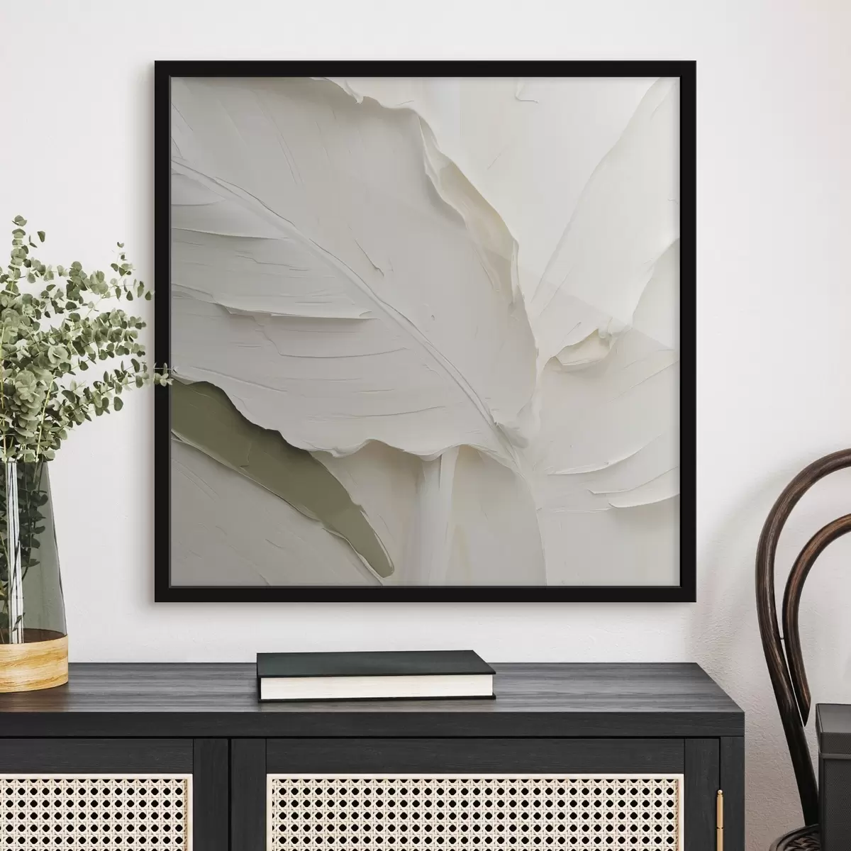 Je kunt het schilderij ophangen aan schroeven. Hiervoor leveren we bevestigingen bij onze foto's, zodat je de foto gemakkelijk kunt ophangen.