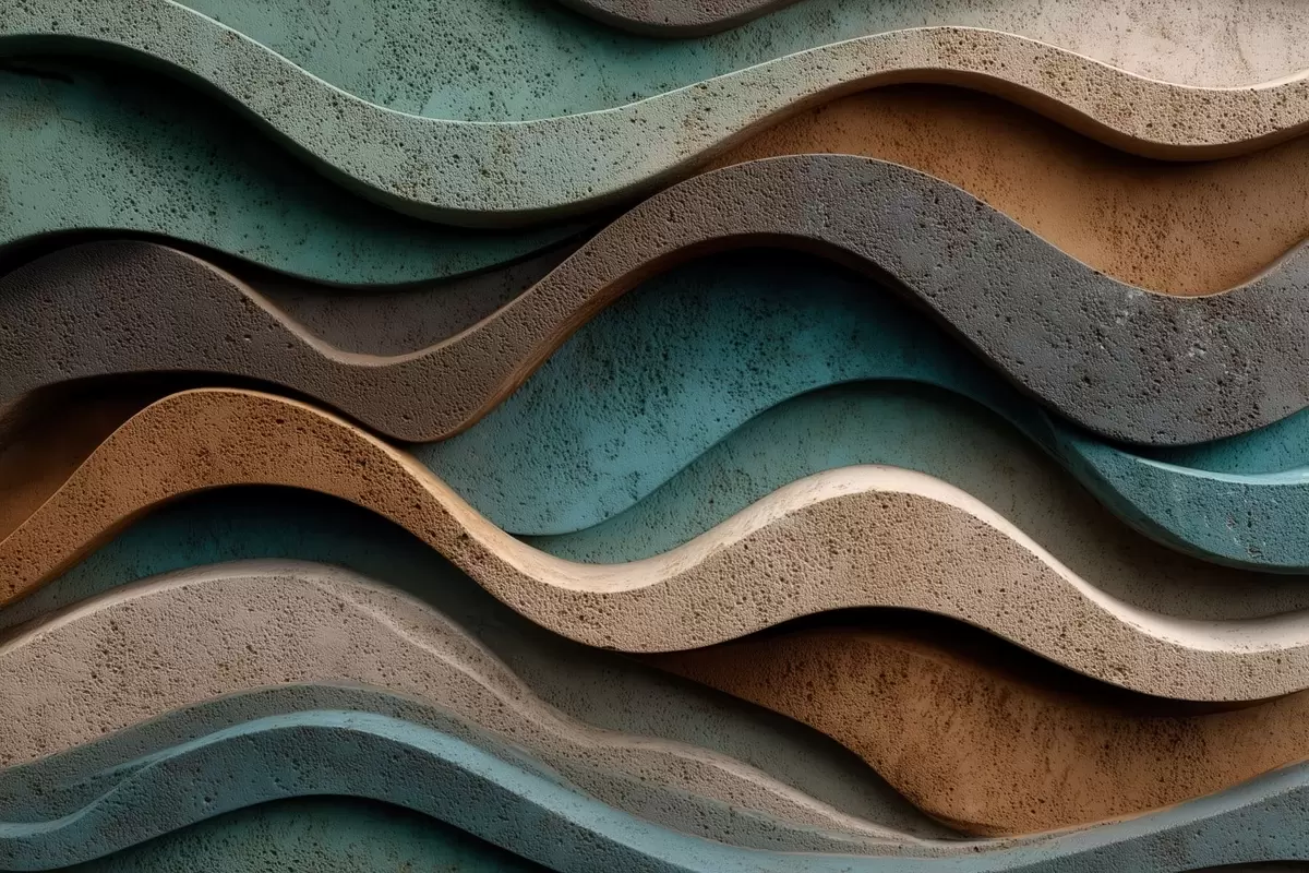 Poster Abstracte golvende lagen in blauwgroene en terracottatinten Nr f48797