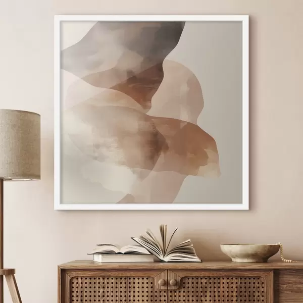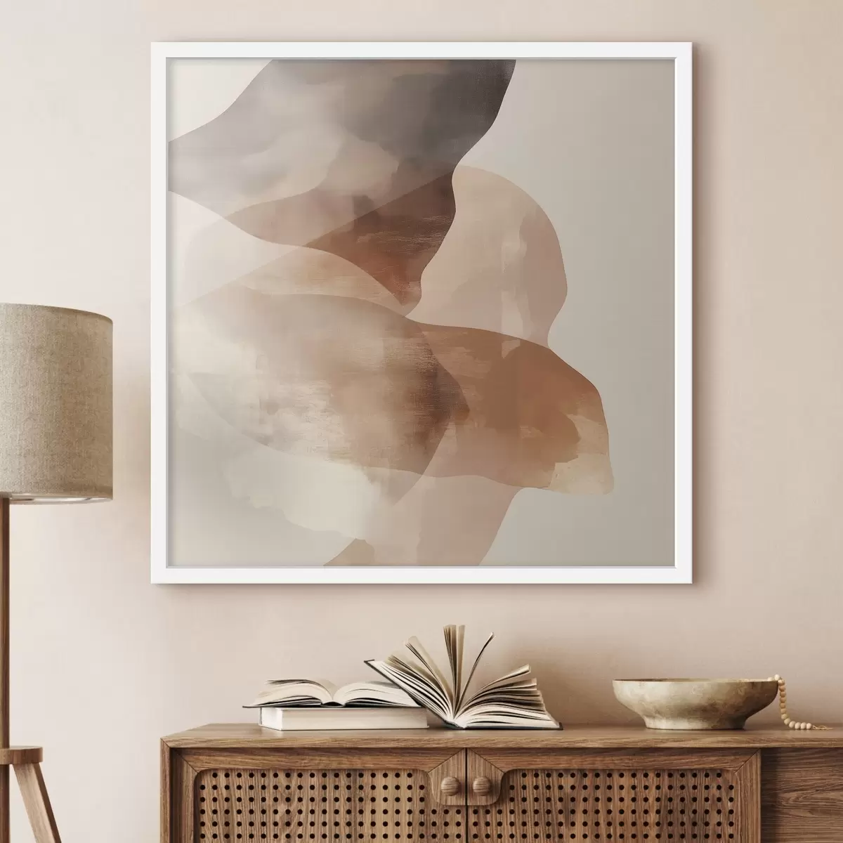 Poster Abstracte compositie in warme bruin-beige tinten Nr f48835