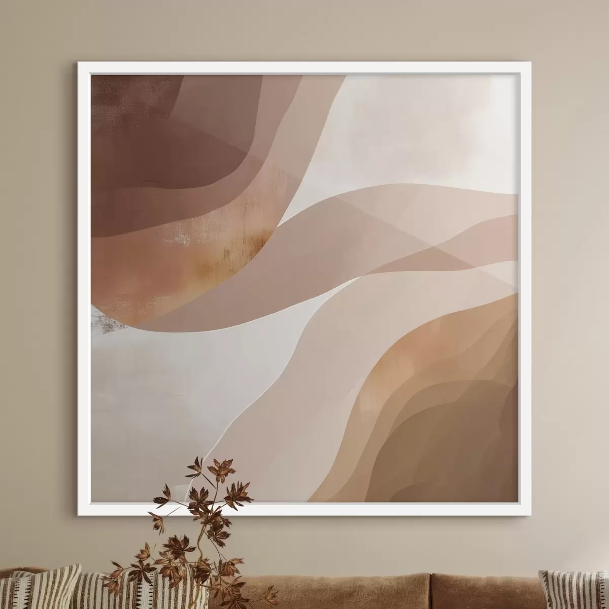 Poster Abstracte golvende vormen in een koffiebruin kleurenpalet Nr f48836
