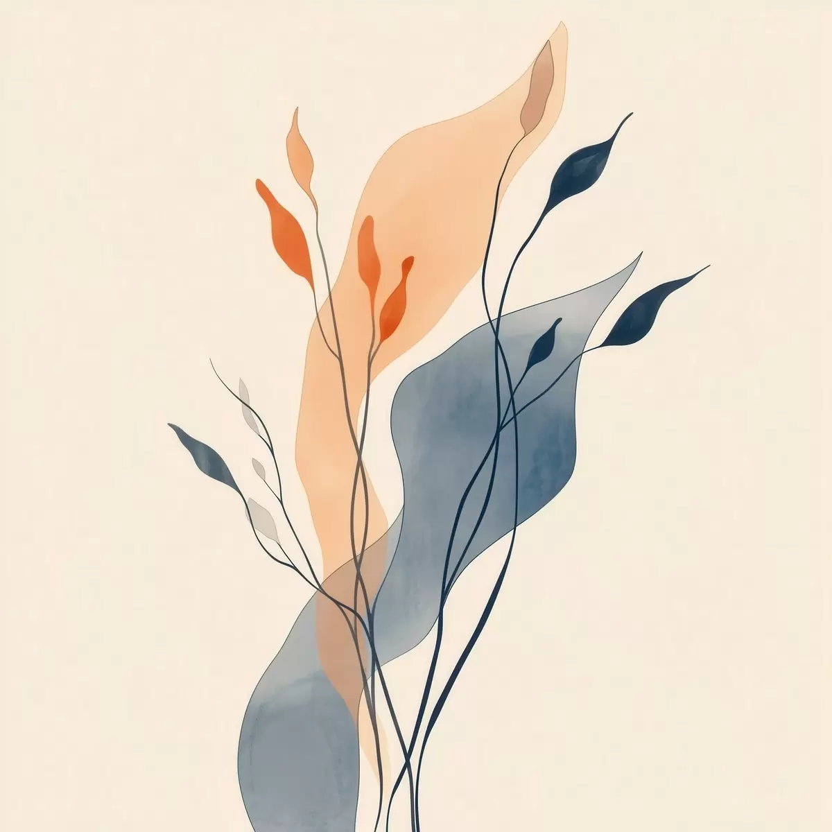 Poster Compositie met expressieve plantensilhouetten in de stijl van een kunstillustratie f48838