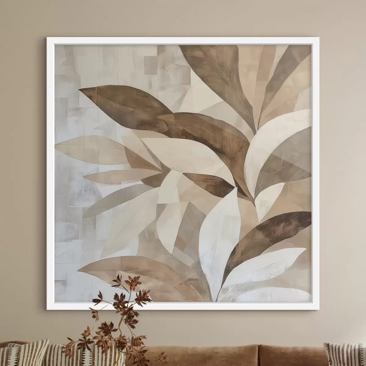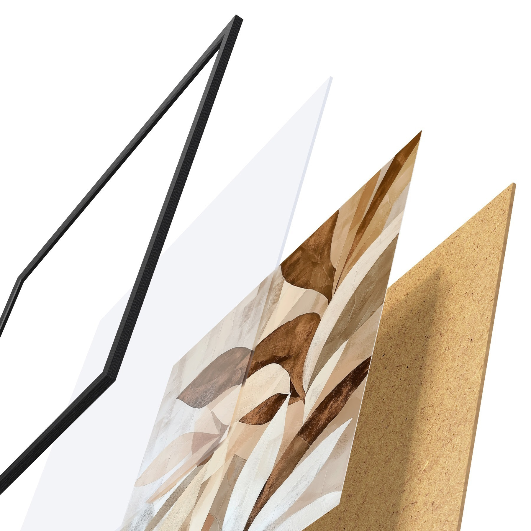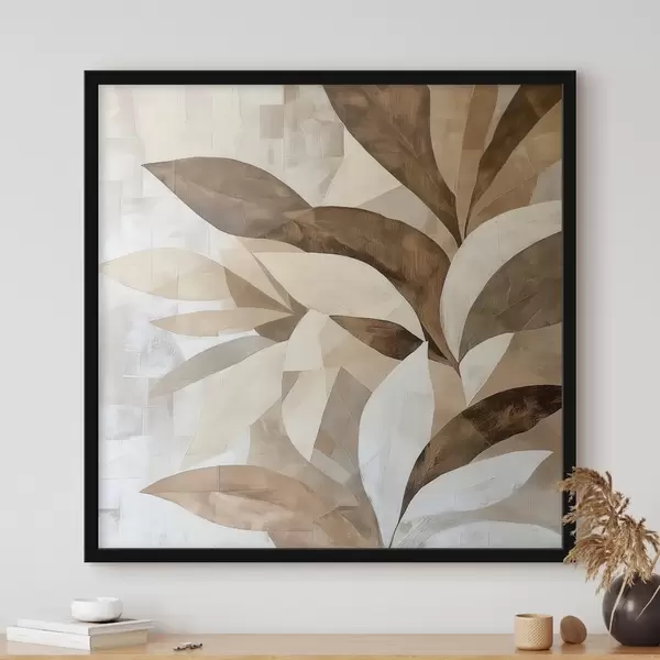 Poster Abstracte bloemcompositie met grote bladeren in bruin-beige tinten Nr f48848