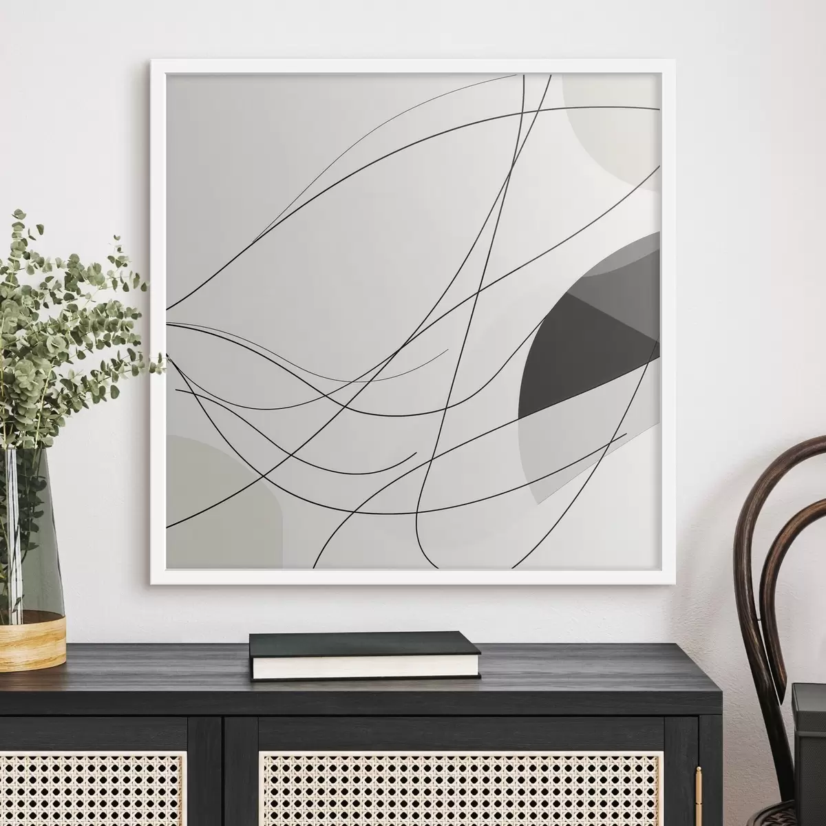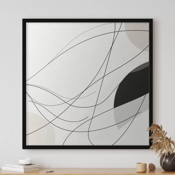 Poster Abstracte compositie met dunne, gebogen lijnen in minimalistische stijl Nr f48854