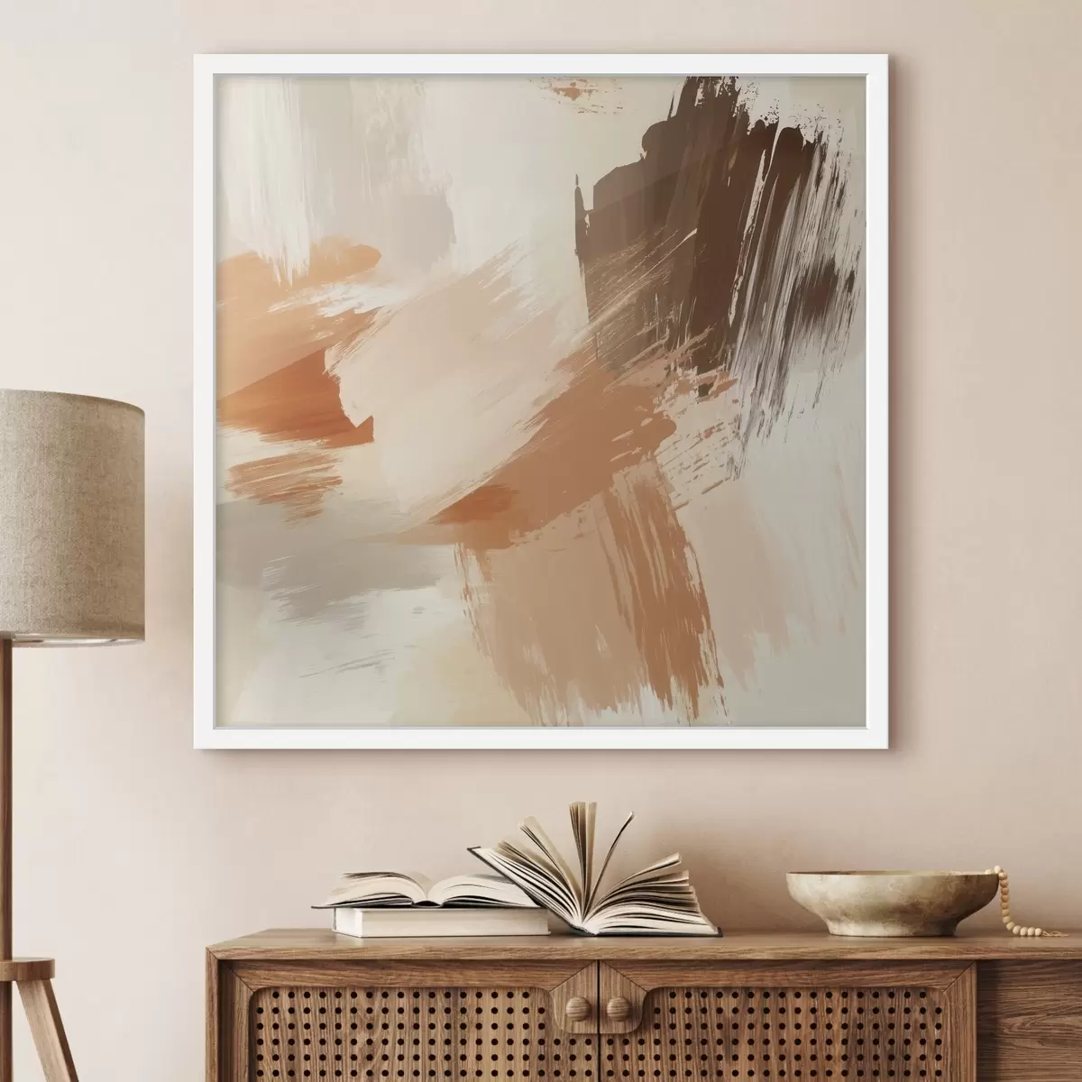 Poster Imitatie van abstracte penseelstreken in zand- en bruintinten Nr f48857