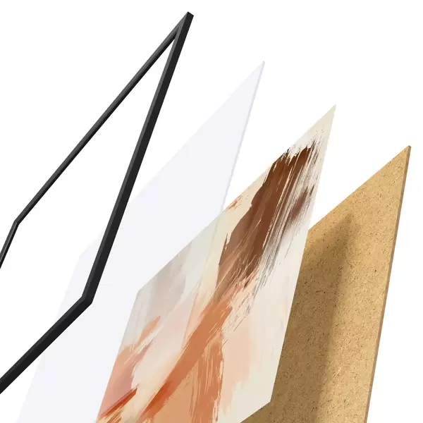 De poster bestaat uit een frame, plexiglas, geprinte afbeelding en spaanplaat achterkant. De poster kan meteen aan de muur worden gehangen dankzij de bevestigingen op de achterkant.