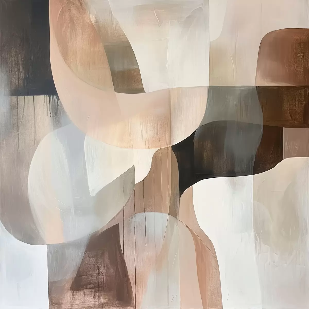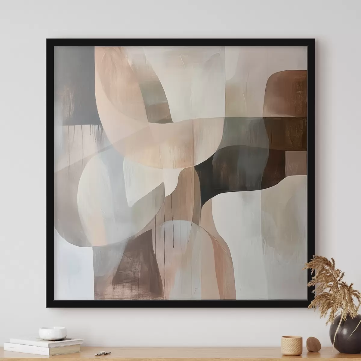 Poster Abstracte compositie in een warm beige-koraalkleurig palet Nr f48859