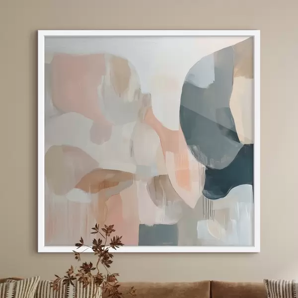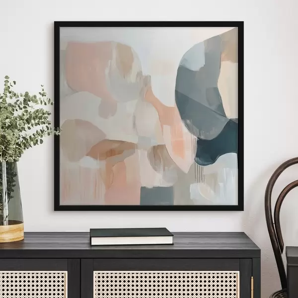 Poster Een abstracte compositie in pastel- en donkerblauwe tinten, uitgevoerd in een eigentijdse schilderstijl f48860