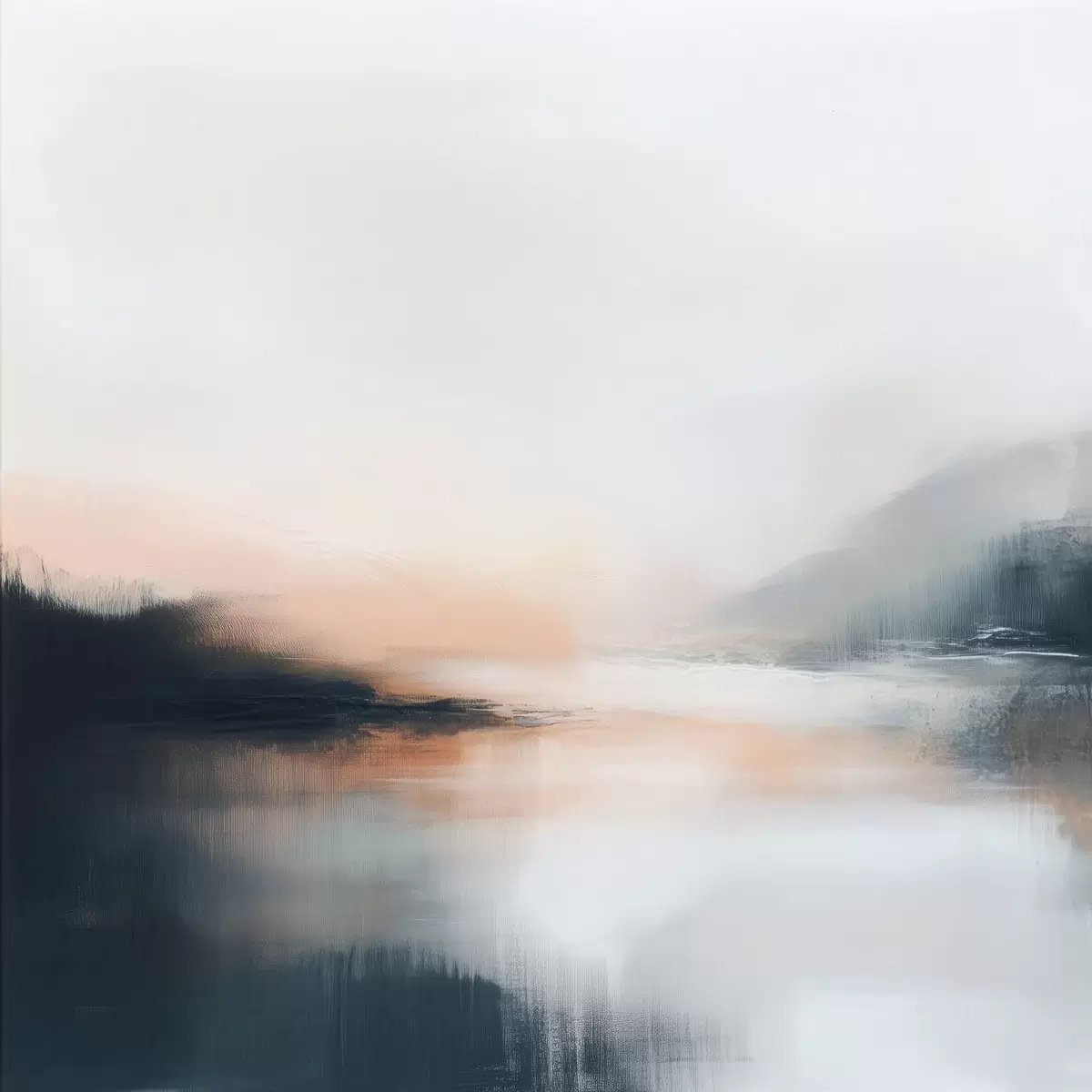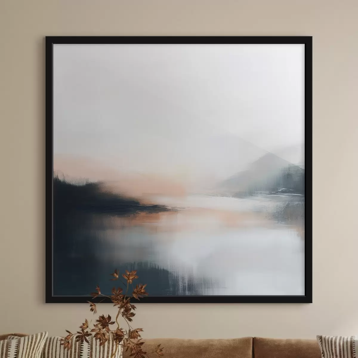 Poster Abstract, mistig landschap in een warm beige-koraalkleurig palet f48861
