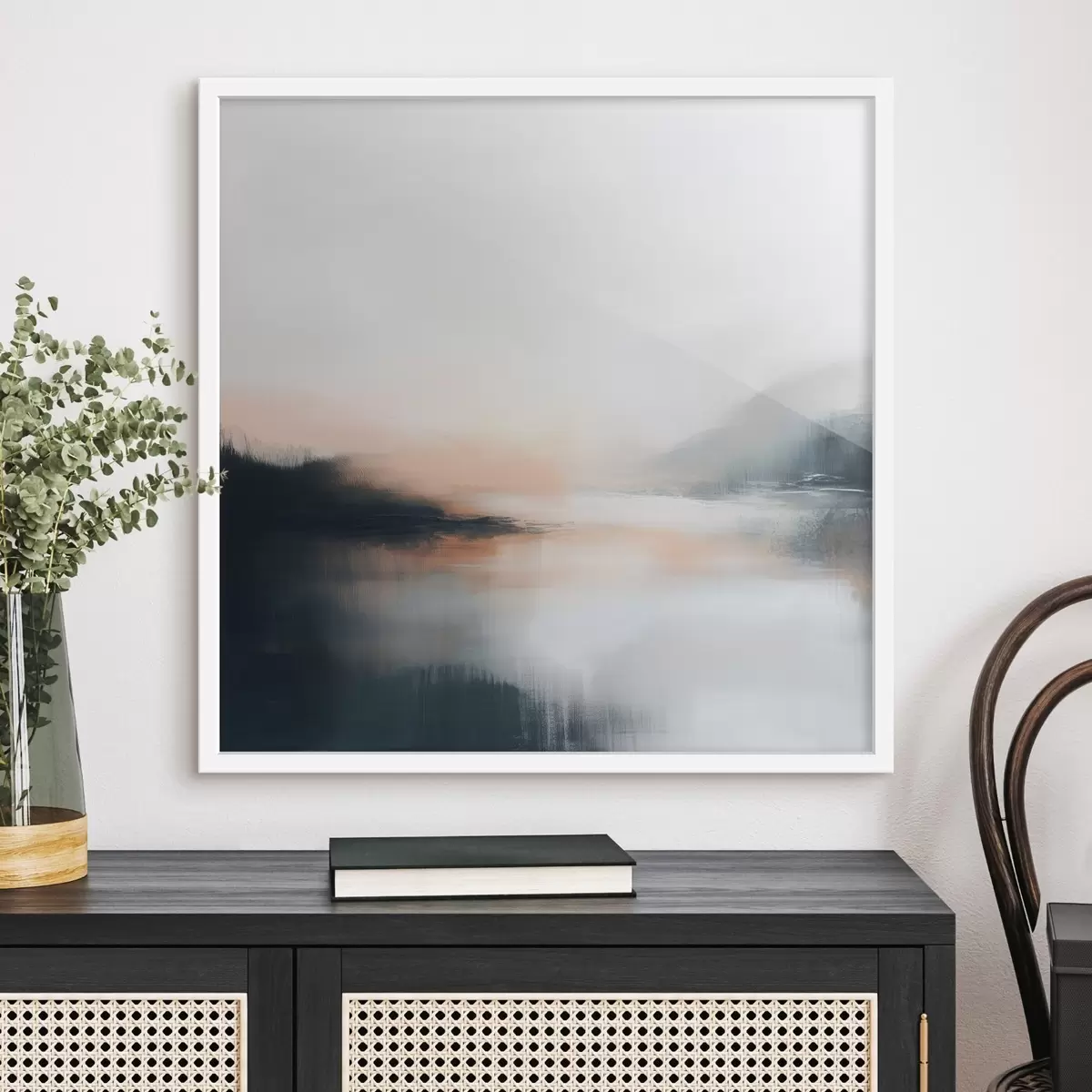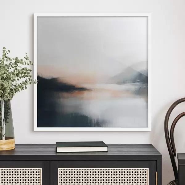 Poster Abstract, mistig landschap in een warm beige-koraalkleurig palet Nr f48861
