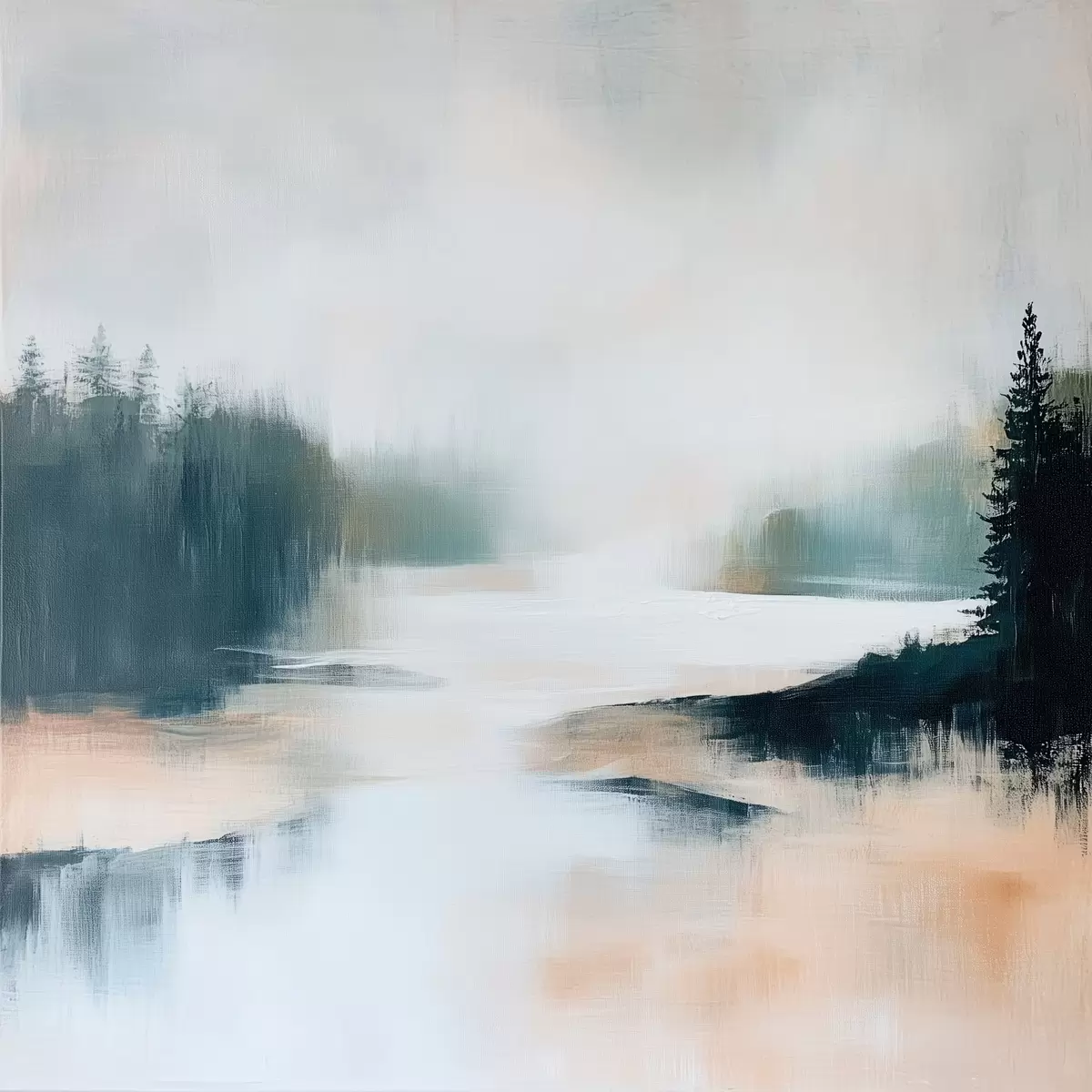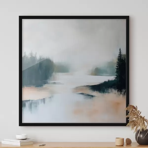 Poster Een abstract boslandschap in roze en blauwe tinten, geschilderd in een eigentijdse stijl Nr f48862