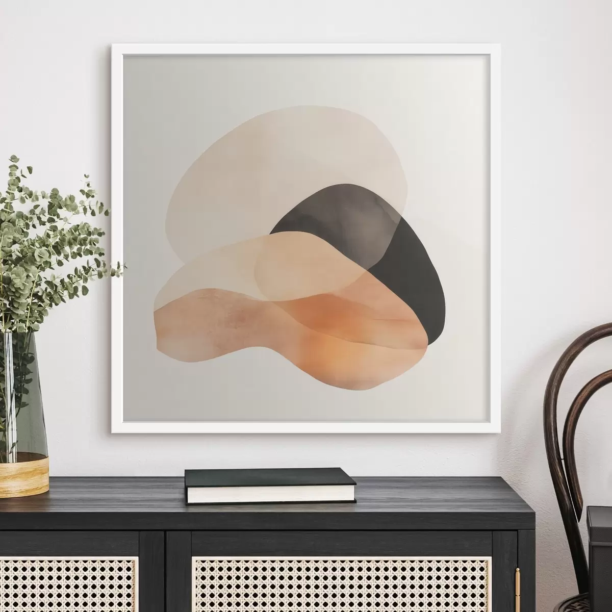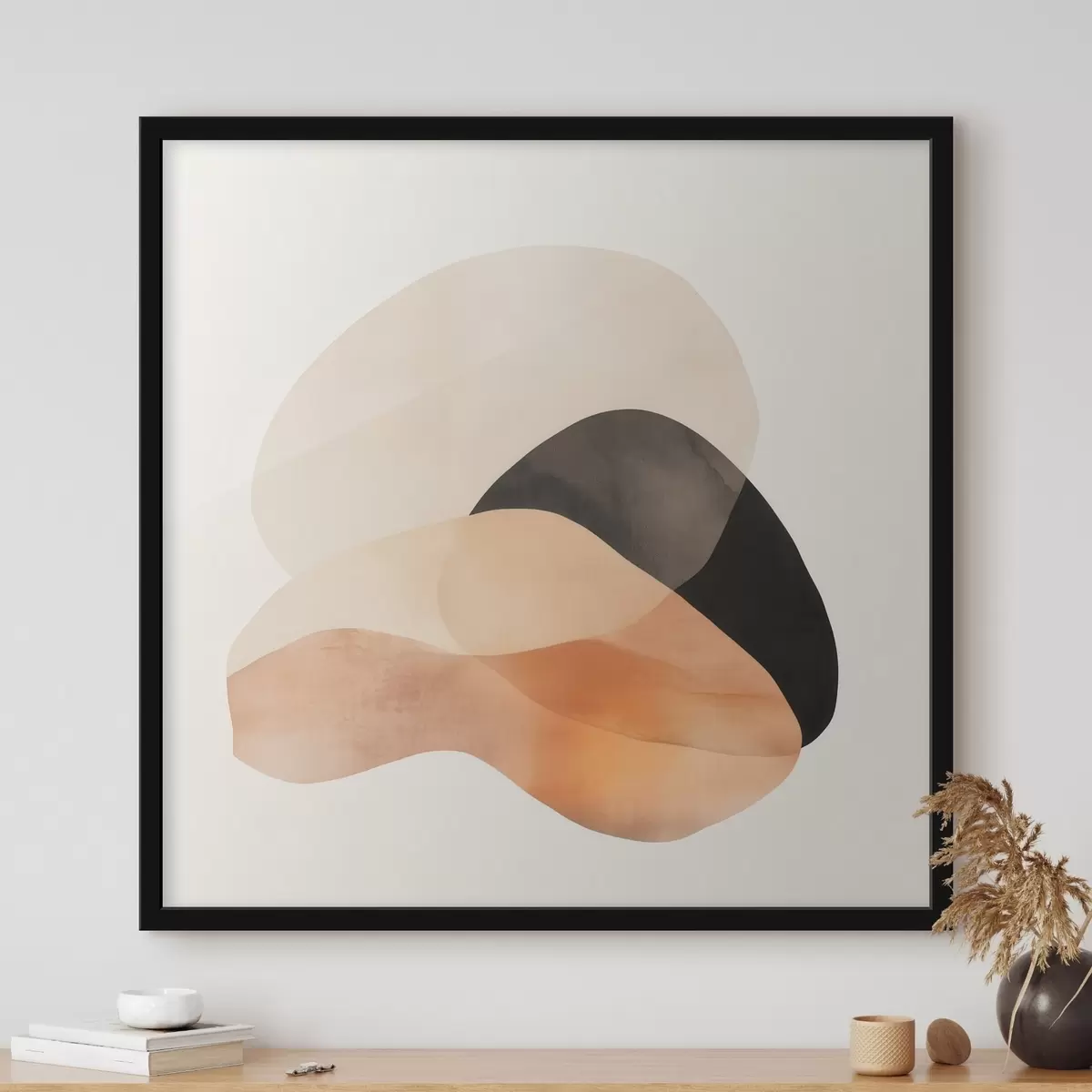 Poster Abstracte vormen in een beige-perzikkleurig palet met donkere accenten in minimalistische stijl Nr f48863