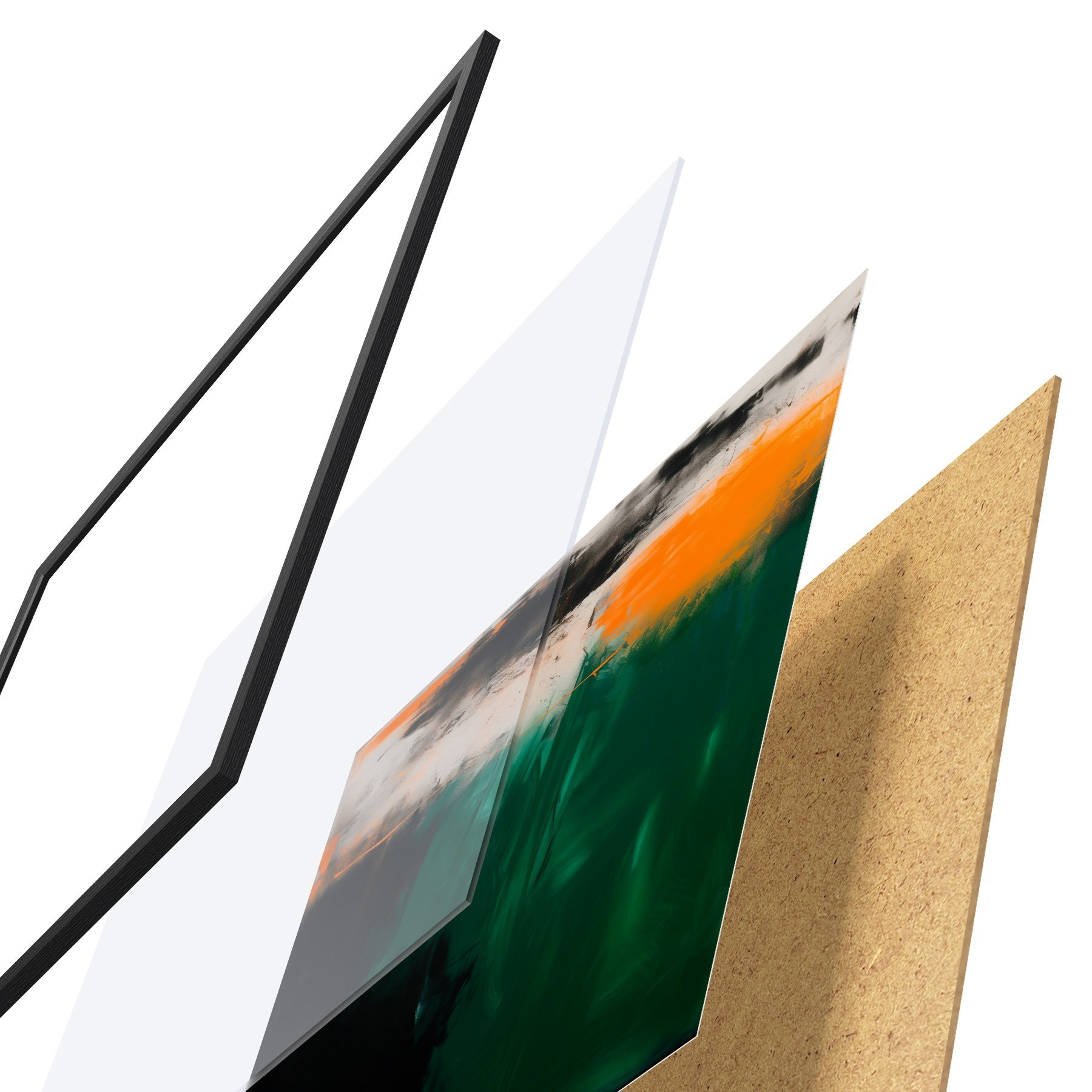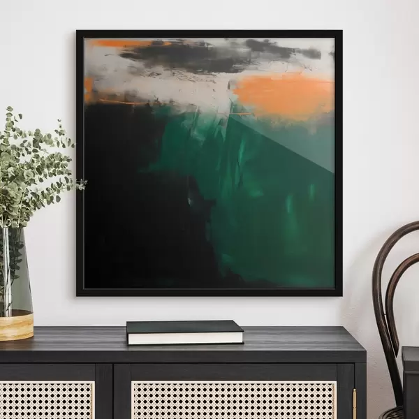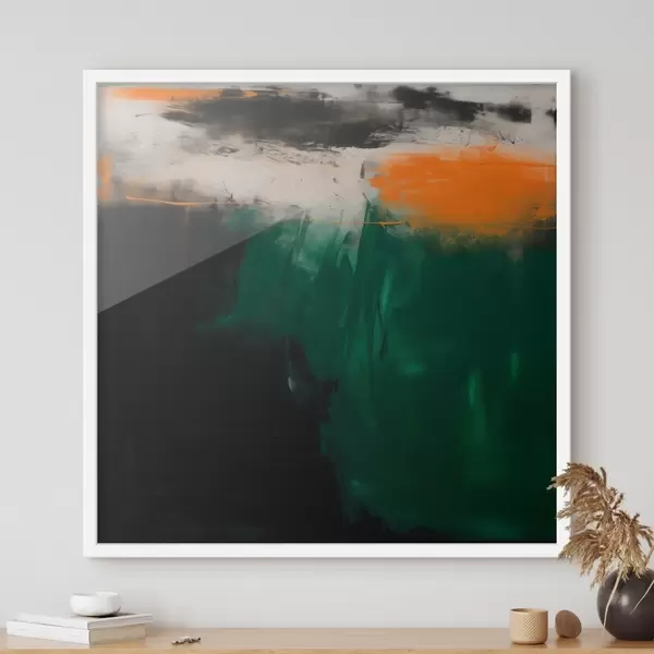 Poster Een abstract schilderij met oranje accenten en diepgroene penseelstreken in een eigentijdse stijl Nr f48865