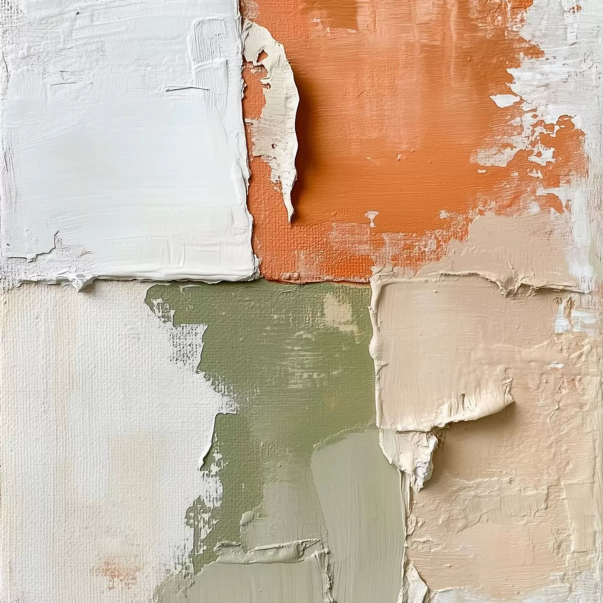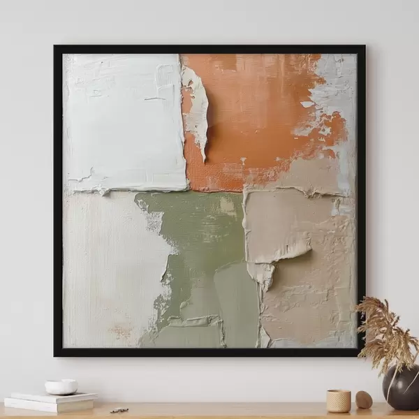 Poster Een combinatie van oranje- en olijfgroene tinten in een eigentijdse schilderstijl Nr f48867