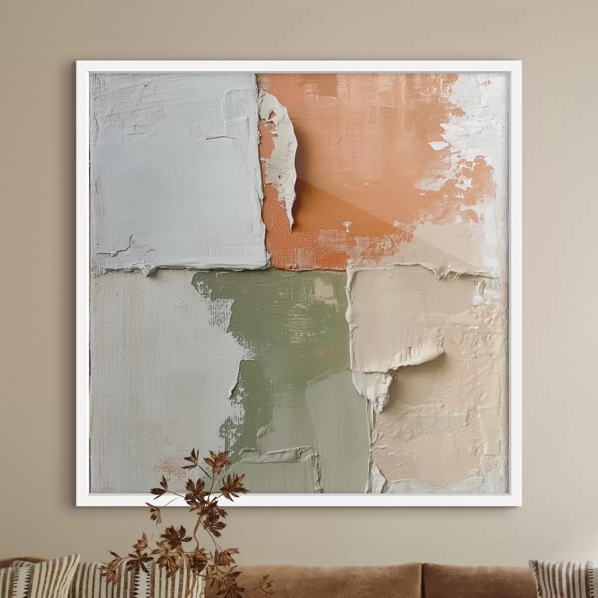 Poster Een combinatie van oranje- en olijfgroene tinten in een eigentijdse schilderstijl f48867